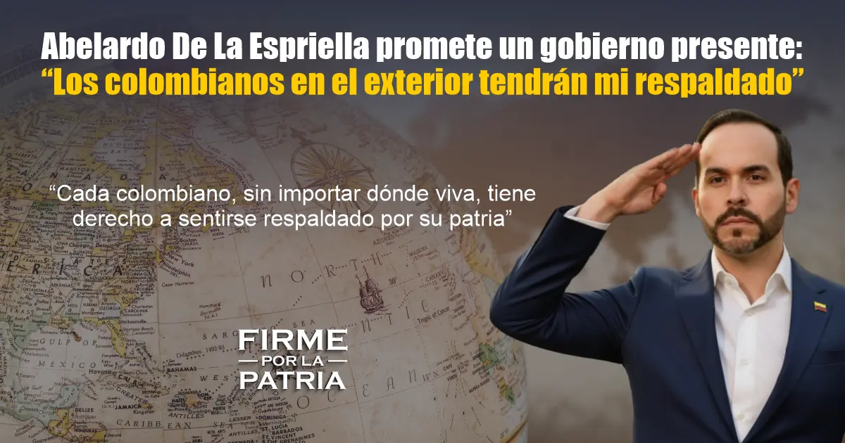 De La Espriella se compromete a que los colombianos en el exterior no se sientan olvidados: su gobierno impulsará políticas para garantizar atención consular eficiente, protección jurídica, apoyo en trámites, conectividad cultural y programas de retorno productivo.