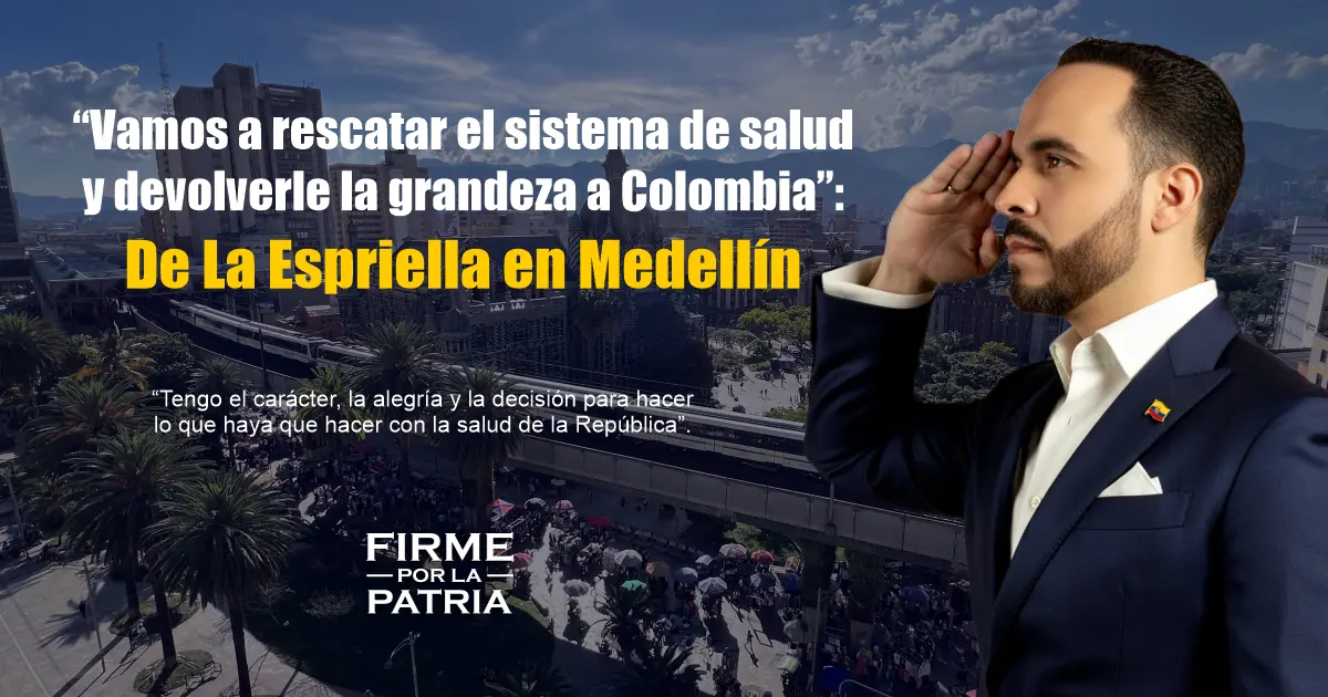 En un encuentro con personal médico y de salud de Antioquia, De La Espriella recordó que Colombia nunca estuvo mejor en materia de seguridad, inversión y política social que entre 2002 y 2010 bajo la presidencia de Álvaro Uribe Vélez, y que ese espíritu de recuperación institucional debe renovarse. “Son cifras y estadísticas, lo demás es opinión”, señaló al tiempo que insistió en que la seguridad física y jurídica será la base para la prosperidad del país.