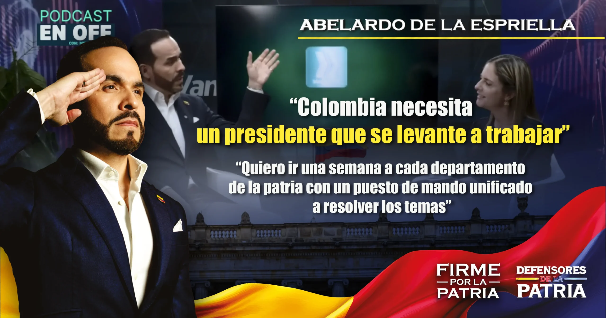 Abelardo De La Espriella advierte que gobernar a Colombia significará desvelos, canas y hasta arriesgar la vida. Así lo dijo en su participación en #EnOff Podcast, donde subrayó que el país requiere un presidente dispuesto a dejarlo todo en el campo de batalla. “Colombia necesita un presidente que se levante a trabajar y trabajar, como decía el presidente Uribe, un presidente responsable”, enfatizó.
