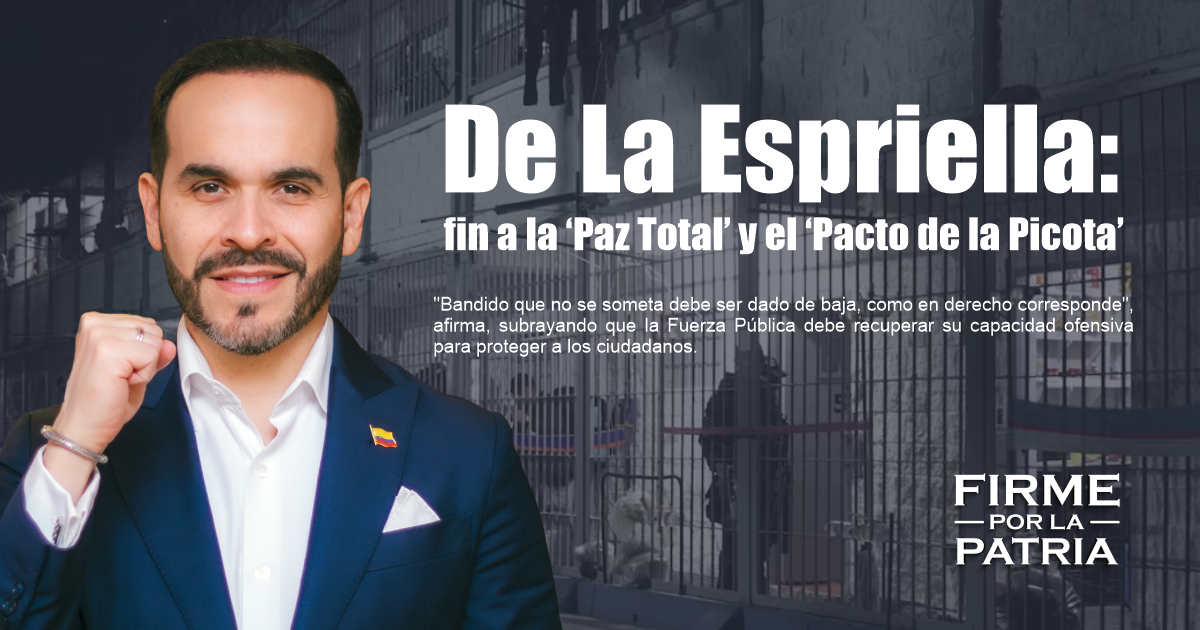 Para Abelardo De La Espriella, precandidato presidencial y líder de Defensores de la Patria, la actual política de orden público del Gobierno Nacional no es un intento fallido de pacificación sino el cumplimiento estricto de un acuerdo oscuro gestado antes de las elecciones: el ‘Pacto de la Picota’.