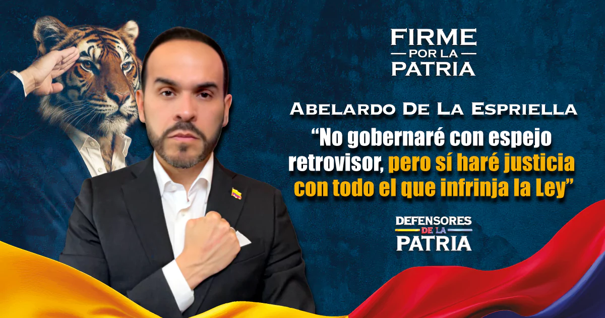 El precandidato presidencial Abelardo De La Espriella explicó la diferencia entre la revancha política y la verdadera justicia. Con contundencia declaró: “Yo no gobernaré con espejo retrovisor, pero sí haré justicia con todo el que infrinja la Ley”.