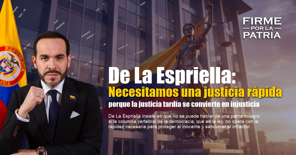 Finalmente, el proyecto liderado por De La Espriella busca que la justicia sea el suelo firme sobre el cual se edifique la reconstrucción nacional. Con una visión basada en valores fundacionales y un respeto irrestricto por el debido proceso, el candidato propone una transición hacia un modelo donde el tiempo de respuesta del Estado sea una garantía de los derechos fundamentales. La rapidez judicial es, en última instancia, la única vía para asegurar que la paz sea una realidad basada en la legalidad y no un concepto vacío. Para De La Espriella, el éxito de su gobierno se medirá por la capacidad de entregarle a cada colombiano la certeza de que su reclamo será atendido con la urgencia que la dignidad humana requiere.