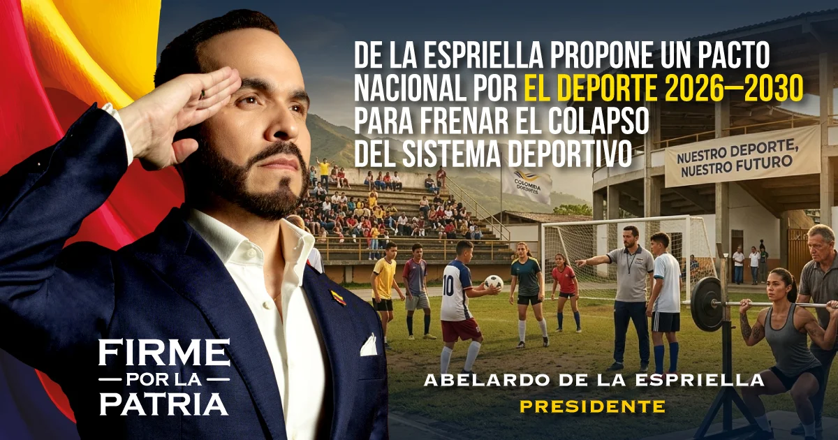 El candidato presidencial Abelardo De La Espriella puso sobre la mesa una de sus propuestas sectoriales más estructuradas: la firma de un Pacto Nacional por el Deporte 2026–2030, con el que busca revertir lo que califica como una crisis histórica en el financiamiento del deporte colombiano.