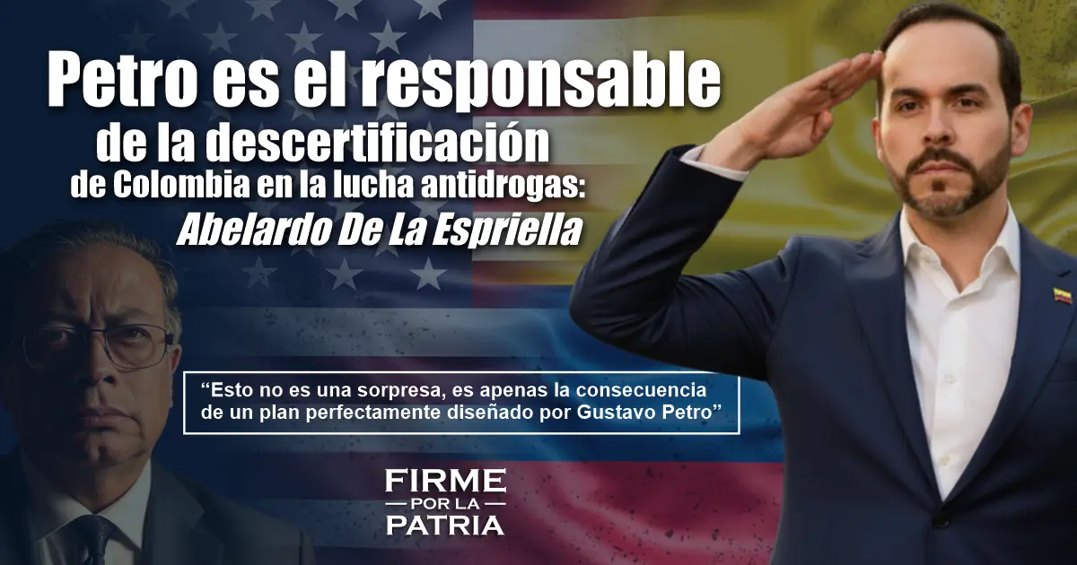 La reciente decisión de Estados Unidos de descertificar a Colombia en la lucha antidrogas generó fuertes reacciones en el escenario político nacional. El precandidato presidencial Abelardo De La Espriella fue enfático al responsabilizar al presidente Gustavo Petro y señaló que la medida es el resultado de una estrategia que “busca empoderar al narcoterrorismo mientras debilita la institucionalidad”.