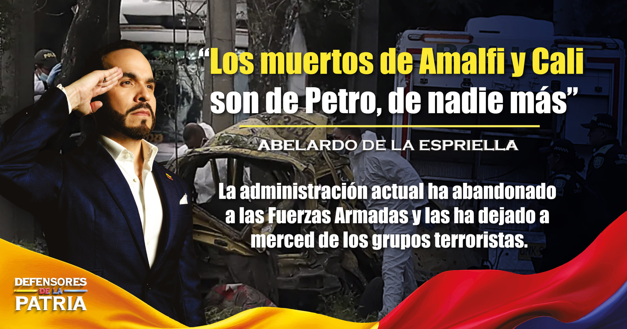 “Petro, quiero que sepas que los muertos de Amalfi y Cali son tuyos, de nadie más. Cada soldado y cada policía caído, Petro, en lo que va del año, es tu responsabilidad. Los dejaste sin armas, sin municiones, sin moral, sin comunicaciones y sin dirección. Los convertiste en carne de cañón, en blanco fácil para los terroristas amigos tuyos, mientras despilfarras billones manteniendo asientos de miles de vagos que solo sirven para inflar tus encuestas y tu ego”.