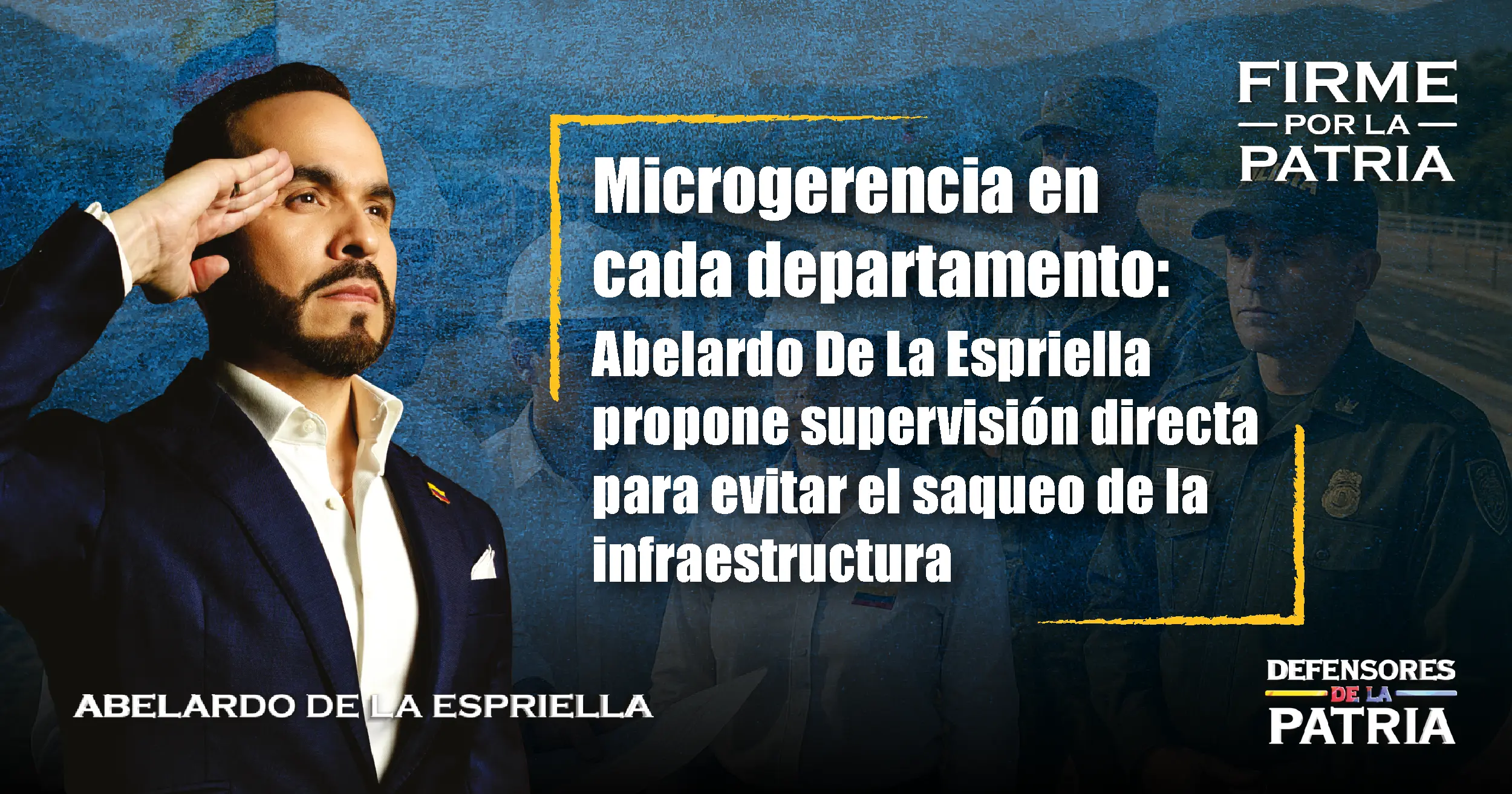 El precandidato presidencial y líder de Defensores de la Patria, Abelardo De La Espriella, presentó su propuesta de microgerencia departamental como herramienta para auditar y supervisar el desarrollo de las obras de infraestructura en todo el país.