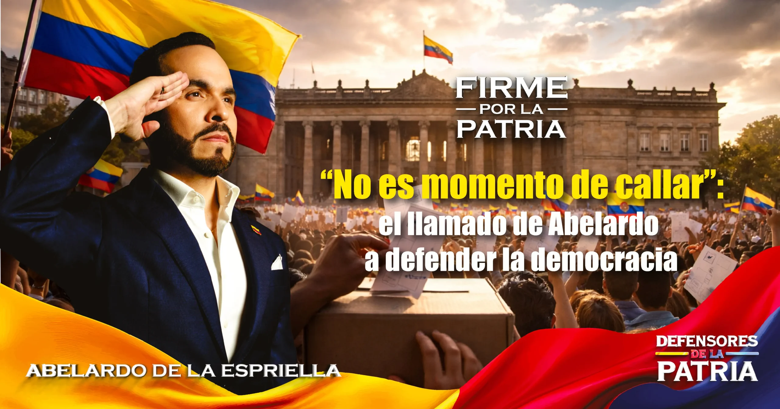 Hay momentos en los que el silencio deja de ser prudencia y se convierte en complicidad. Ese es, según el precandidato presidencial Abelardo De La Espriella, el punto exacto en el que se encuentra hoy Colombia. Su mensaje no parte de la coyuntura electoral, sino de una convicción más profunda: cuando la institucionalidad está en riesgo, quedarse al margen no es una opción legítima.