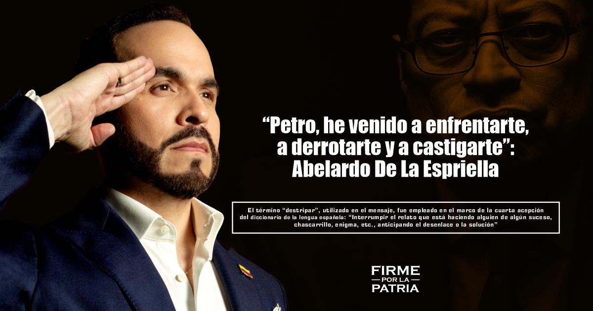 El término “destripar”, utilizado en el mensaje, fue empleado en el marco de la cuarta acepción del Diccionario de la Lengua Española: “Interrumpir el relato que está haciendo alguien de algún suceso, chascarrillo, enigma, etc., anticipando el desenlace o la solución”, con lo cual De La Espriella enfatiza que su objetivo es desmontar los falsos relatos y las narrativas engañosas que ha promovido el Petro.