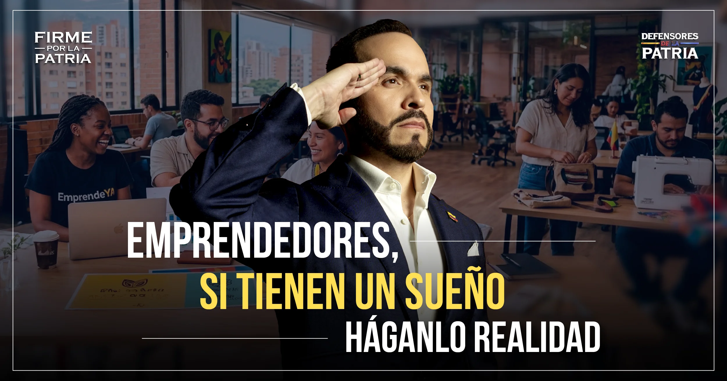 El candidato presidencial y líder de Defensores de la Patria, Abelardo De La Espriella conoce en carne propia lo que es arriesgarse para emprender. Por ello, transmite un mensaje claro: “lo primero y más importante es que no paren y que nunca dejen de cumplir sus sueños. Si tienen un sueño, materialízenlo. No se detengan por el qué dirán o por el miedo al fracaso”.